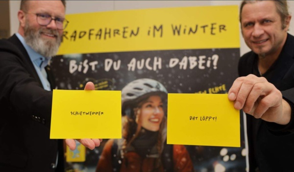 Heute startete die Kampagne mit einem (winterlichen) Termin im Wirtschaftsministerium. Verkehrsminister Claus Ruhne Madsen möchte auch seine Winterhelden motivieren. Im Foyer des Ministerium sind die RAD.SH Aufsteller aufgebaut. In 31 Kommunen und 5 Kreisen wird mit Aufstellern und Flyern in Rathäusern und Kreistagen auf das Winterradeln aufmerksam gemacht. Ziel der Kampagne von RAD.SH ist, Sommer-Radler…