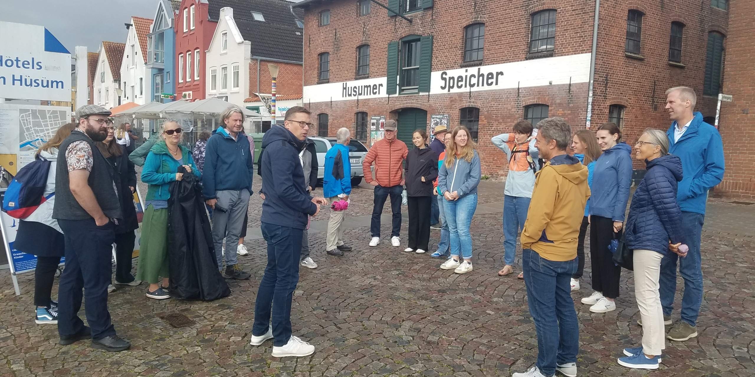 Nach einer kurzen Ankommensrunde begann der Tag in Husum mit einer Exkursion durch die Husumer Innenstadt, geführt von Malte Hansen, Amtsleiter des Ordnungsamts Husum, bei der unter anderem der neue Bahnübergang besichtigt wurde.