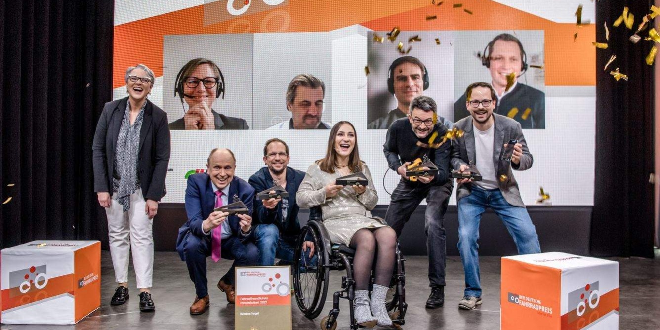 Der Jury des Deutschen Fahrradpreises ist die Wahl in diesem Jahr nicht leichtgefallen. Die 18 Radverkehrsexpert:innen haben mit „OpenBikeSensor“ und „SimRa“ gleich zwei Erstplatzierte in der Kategorie „Service & Kommunikation“ gewählt und einen Sonderpreis an die mobile Teststation „COVID19BIKE“ vergeben. Der erste Preis in der Kategorie Infrastruktur geht nach Ostwestfalen-Lippe für das „Radnetz OWL“. Die Gewinner des mit insgesamt 24.000 Euro dotierten Wettbewerbs wurden am Donnerstag (17. Februar 2022) bei der Online-Preisverleihung im Bauwerk Köln bekannt gegeben. Die ehemalige Radrennsportlerin Kristina Vogel nahm ihren Preis als „Fahrradfreundlichste Persönlichkeit“ vor Ort entgegen.