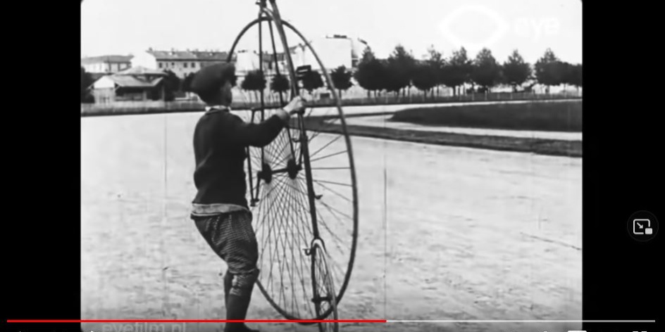 Ein Kurzfim von 1915 zeigt Fahrversuche auf historischen Rädern aus der Zeit von 1818 bis 1890. Man sieht sehr schön die Entwicklung vom Laufrad hin zum Sicherheitsrad in heutiger Form (Sichrheitsrad, da es mit den Hochrädern in der damaligen Zeit zu vielen Unfällen kam).