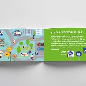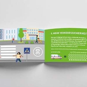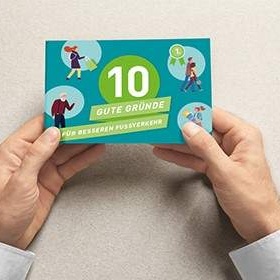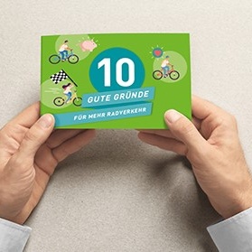 Für die Förderung des Fuß- und Radverkehrs gibt es gute Gründe. Zehn davon haben wir in unseren handlichen Broschüren zusammengestellt. Die Broschüren können auf Veranstaltungen, Bürgerforen, Sitzungen etc. verteilt oder im Rathaus ausgelegt werden.