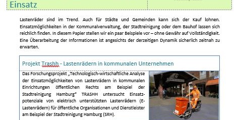Lastenräder sind im Trend. Auch für Städte und Gemeinden kann sich der Kauf lohnen. Einsatzmöglichkeiten in der Kommunalverwaltung, der Stadtreinigung oder dem Bauhof lassen sich reichlich finden. In diesem Papier stellen wir ein paar Beispiele vor – ohne Gewähr auf Vollständigkeit. Eine Überarbeitung der Informationen ist angesichts der derzeitigen Dynamik sicherlich zeitnah zu erwarten.
