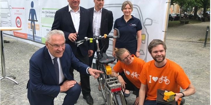 Der OpenBikeSensor (www.openbikesensor.org) wurde ehrenamtlich entwickelt und 2022 mit dem Deutschen Fahrradpreis ausgezeichnet. Das Open Source-Projekt stellt Interessierten Bau- und Schaltpläne sowie die dazugehörige Software zum Nachbau zur Verfügung. In vielen Orten und Regionen wird der OpenBikeSensor bereits von Initiativen und Einzelpersonen genutzt. So hat kürzlich auch der ADFC Bayern zusammen mit dem Bayerischen Innen- und Verkehrsministerium und dem ADAC ein Projekt „Überholabstände OpenBikeSensor“ gestartet und mit einem maßstabgetreuen Banner für die Einhaltung des Mindestabstands geworben.