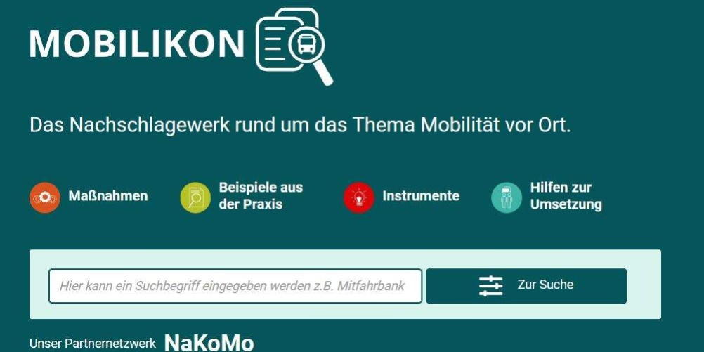 Mobiliko ist ein Online-Nachschlagewerk für Mobilitätslösungen vor Ort und wie diese umgesetzt werden können. Alle Inhalte basieren auf Forschungsprojekten, Modellvorhaben, Fachpublikationen und Interviews mit Expertinnen und Experten aus der Praxis, von Verbänden, Behörden und Unternehmen. Mobilikon ist ein gemeinsames Projekt des BBSR und des Bundesministeriums für Wohnen, Stadtentwicklung und Bauwesen (BMWSB) im Rahmen des Programms Region gestalten.