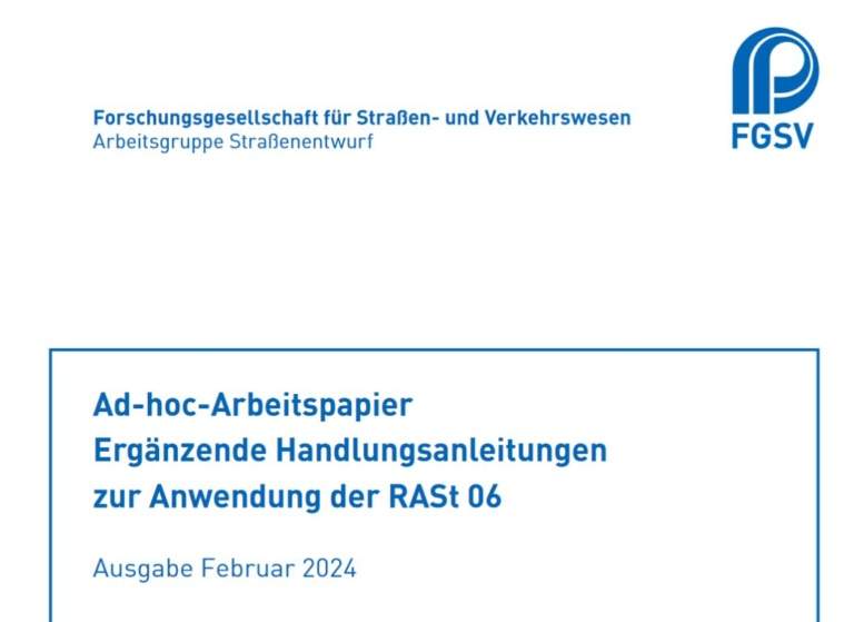 Apr.52024 FGSV Ad-hoc-Arbeitspapier: Ergänzende Handlungsanleitungen zur Anwendung der RASt 06 Fachthemen5. April 2024 weiterlesen