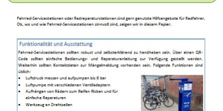 Angesichts der aktuellen Fördermöglichkeiten und der hohen Förderquoten sind Servicestationen für den Radverkehr für viele Kommunen interessant geworden. Fahrrad-Servicestationen oder Radreparaturstationen sind gern genutzte Hilfsangebote für Radfahrer. Ob, wo und wie Fahrrad-Servicestationen sinnvoll sind, zeigen wir in diesem Papier.