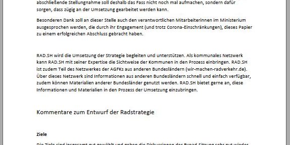 Die Landesradstrategie steht kurz vor der Fertigstellung. RAD.SH wurde umfangreich beteiligt und liefert letzte Kommentare zur Strategie.